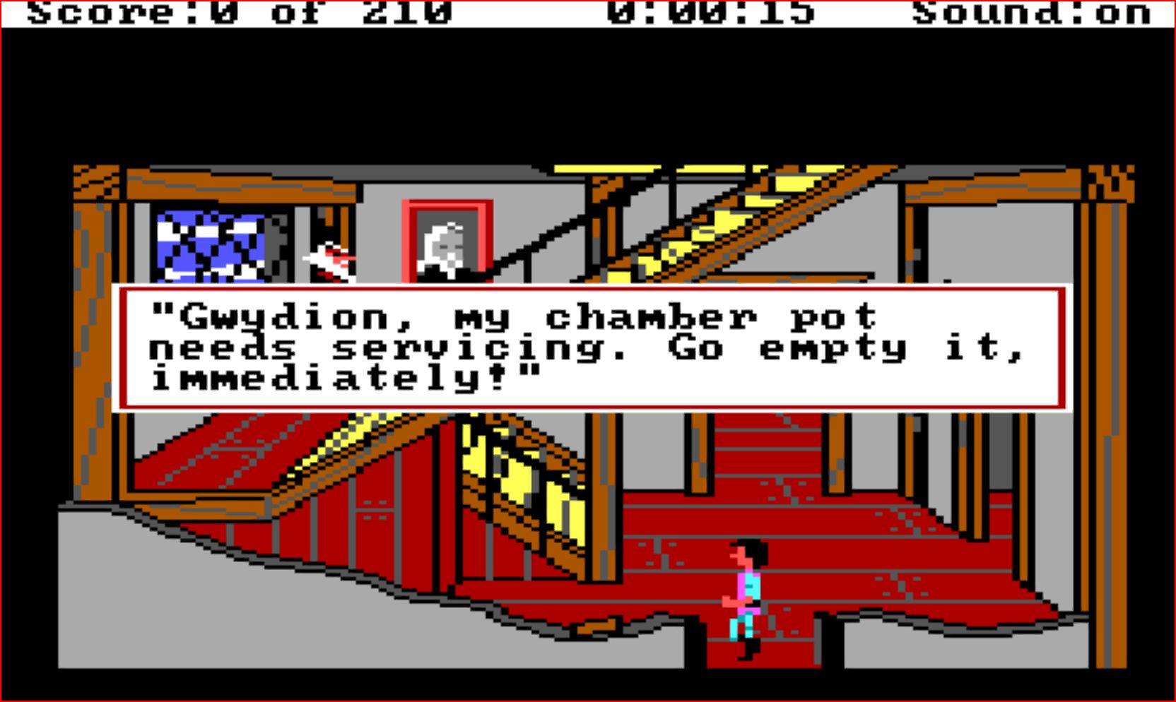For mitt vedkommende var veien inn i Sierra-universet relativt brokete. Jeg hadde noen kompiser som hadde PC hjemme, og fikk se litt hos dem, men jeg hadde ingen egen maskin. Derfor var min Sierra-erfaring til å begynne med i all hovedsak begrenset til å se den sorte «CENSORED»-boksen i Leisure Suit Larry gå opp og ned, og å se Gwydion bli forvandlet til en haug med støv av slemmingen Manannan. «Always leave them wanting more» er et uttrykk fra underholdningsindustrien. Det kunne like gjerne vært en beskrivelse av meg på vei hjem fra PC-kompiser, med Sierra-spill på hjernen.
